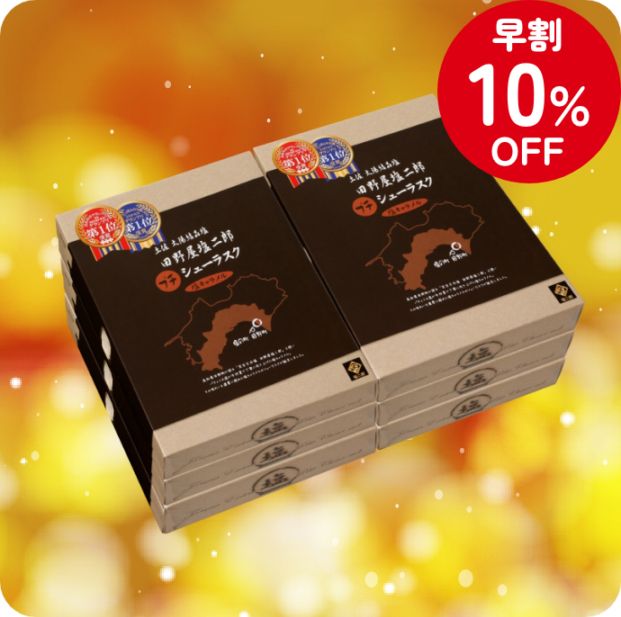 | 内容量 | 田野屋塩二郎プチシューラスク(10枚入)×6箱 |