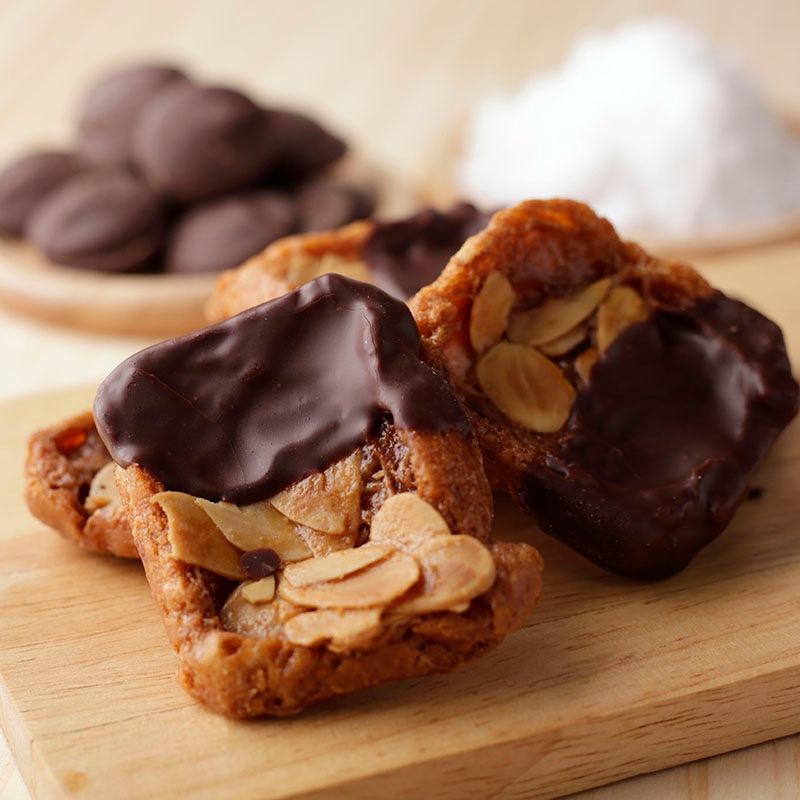 | 原材料名 | 【田野屋塩二郎プチシューラスク ショコラ】 マーガリン(国内製造)、チョコレート(砂糖、カカオマス、ココアバター、バニラ)、卵、アーモンドスライス、乳等を主要原料とする食品、小麦粉、砂糖、牛乳、塩、こんにゃく粉加工品(粉あめ、こんにゃく粉)/トレハロース、乳化剤、香料、乳清ミネラル、アナトー色素、(一部に乳成分・卵・小麦・大豆・アーモンドを含む) 【田野屋塩二郎プチシューラスク】 マーガリン(国内製造)、卵、アーモンドスライス、乳等を主要原料とする食品、小麦粉、砂糖、牛乳、塩、こんにゃく加工品(粉あめ、こんにゃく粉)/トレハロース、乳化剤、香料、乳清ミネラル、アナトー色素、(一部に乳成分・卵・小麦・大豆・アーモンドを含む) 【田野屋塩二郎 アーモンドサブレ・ブリック】 小麦粉(国内製造)、バター、粉糖、アーモンドスライス、加糖卵黄、マーガリン、乳等を主原料とする食品、砂糖、塩、卵、牛乳、こんにゃく粉加工品(粉あめ、こんにゃく粉)/ トレハロース、乳化剤、乳清ミネラル、香料、アナトー色素、(一部に乳成分・卵・小麦・大豆・アーモンドを含む) |