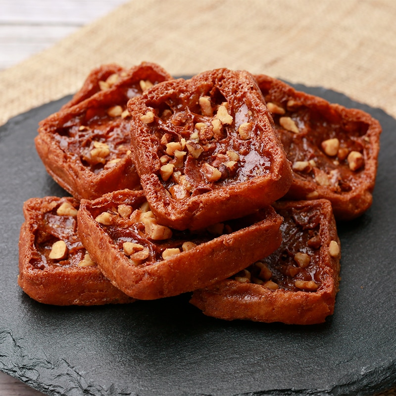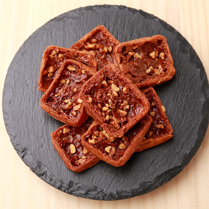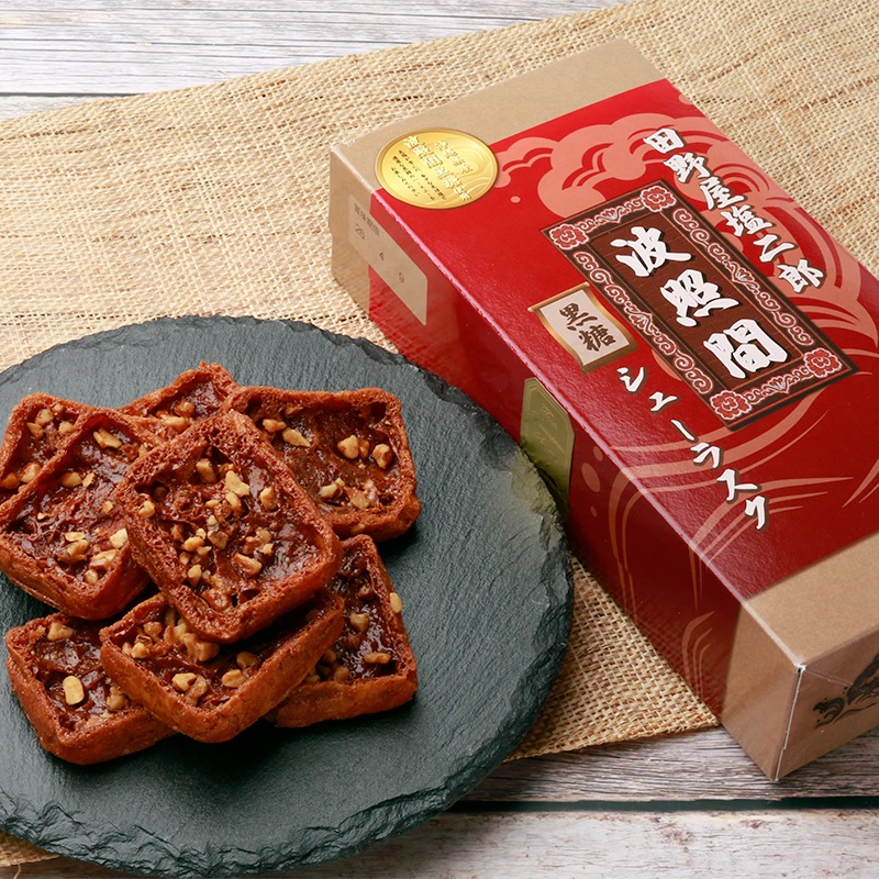 沖縄の太陽と大地の恵みを凝縮した『波照間黒糖』に、高知県田野町の完全天日塩『田野屋』の希少な塩を合わせた黒蜜とラスク専用に焼き上げたシュー、驚くほどくちどけの良いシューラスクができあがりました。