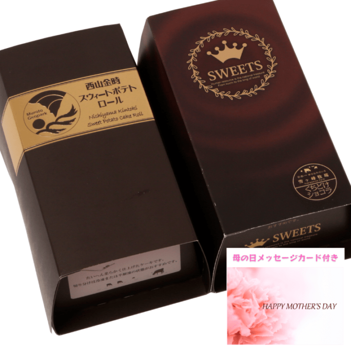 【同梱不可】送料込み※母の日メッセージカード付き「白」西山金時芋スウィートポテトロール& 雪ヶ峰ロールくちどけショコラ