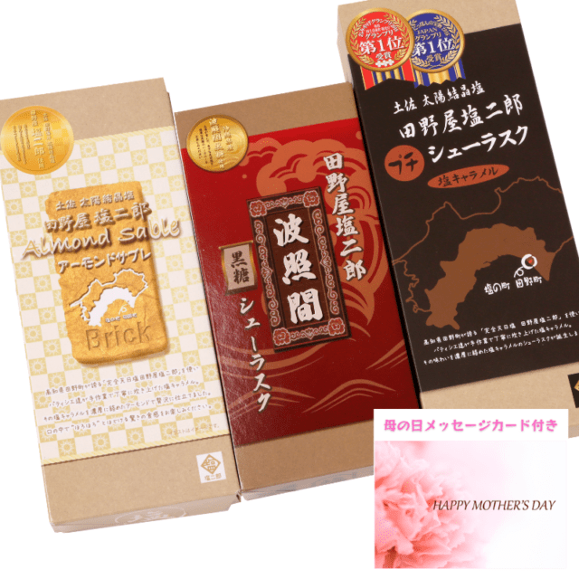 【同梱不可】送料込み※母の日メッセージカード付き 田野屋塩二郎シューラスク(10枚入)&田野屋塩二郎波照間黒糖シューラスク(8枚入)&田野屋塩二郎アーモンドサブレ ブリック(14個入)